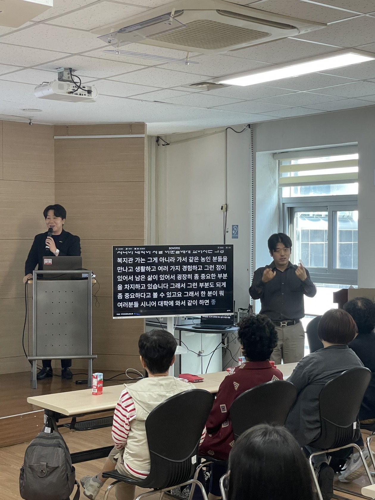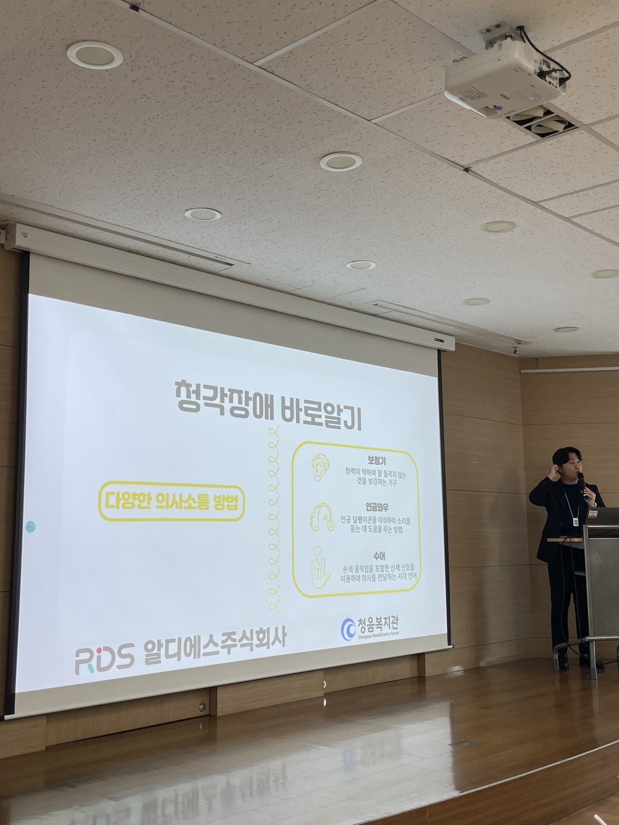 청음복지관 귀 건강교육 및 봉사활동(9/26) 페이지 정보 작성자 관리자 조회 12회 작성일 25-11-24 14:09 목록 본문 청음복지관 청각장애우분들과 함께 귀 건강 교육을 진행하였으며, 소통 봉사활동을 진행하였습니다.