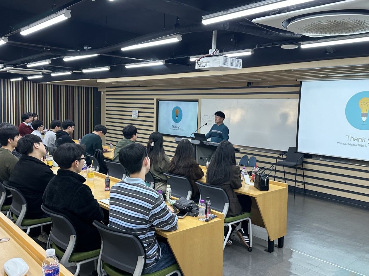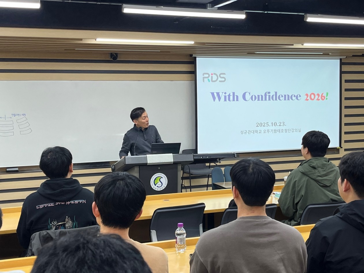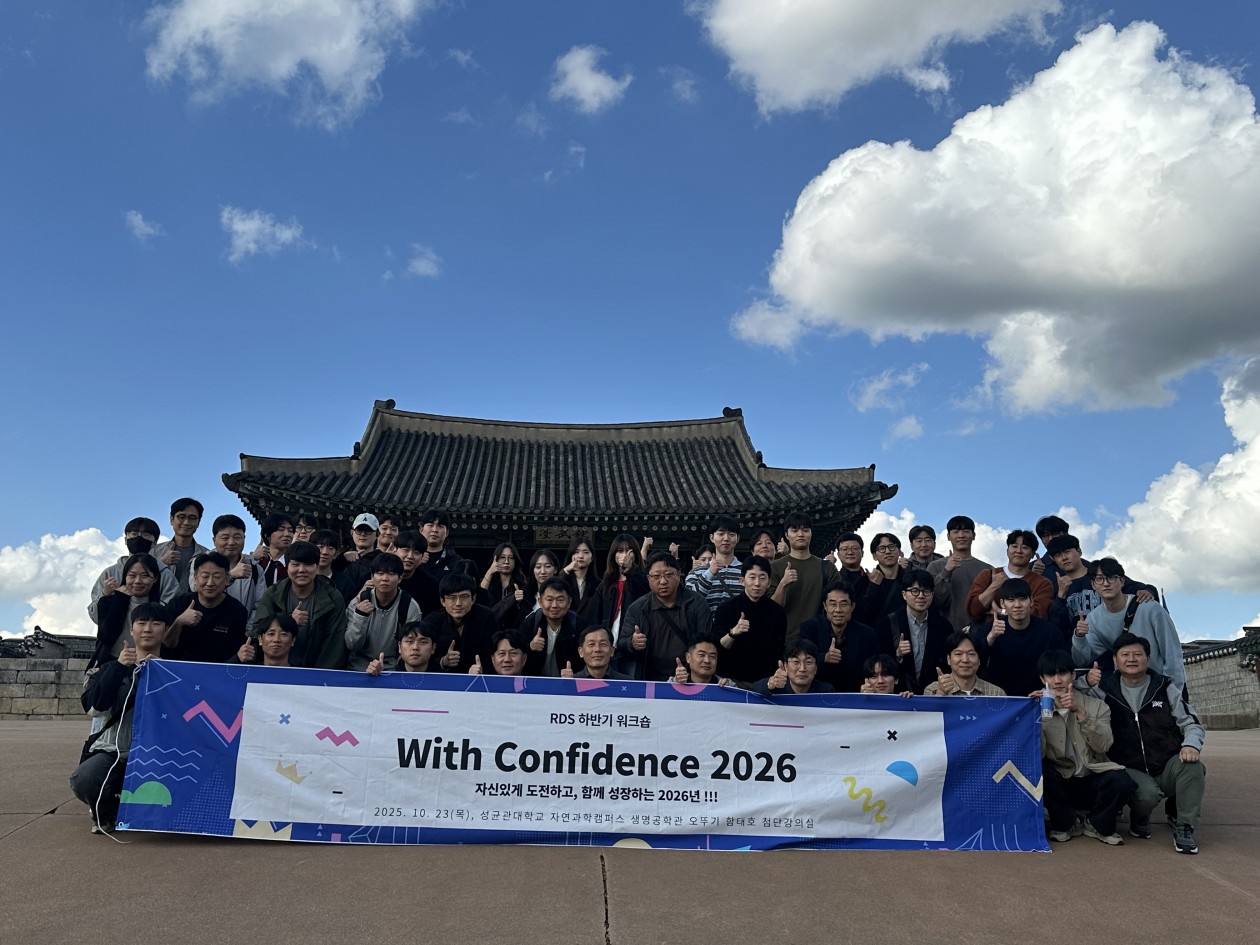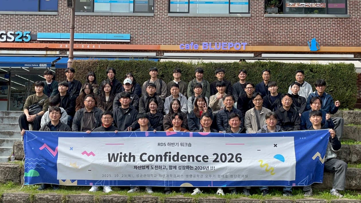 2025년 하반기 워크숍 (With Confidence 2026! , 10/23) 페이지 정보 작성자 관리자 조회 23회 작성일 25-11-24 14:25 목록 본문 2025년 성균관대학교 자연과학 캠퍼스 생명공학관(오뚜기 함태오 첨단강의실)에서 'With Cofidence 2026!'를 주제로 임직원 워크숍을 10월 23일 진행하였습니다.